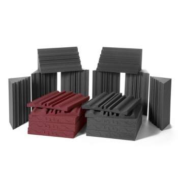 Acoustic room kit for rooms < 10m2. Includes: (16) acoustic panels + (8) basstraps. Coverage: 8.64m2. Colors: Charcoal and Garnet.