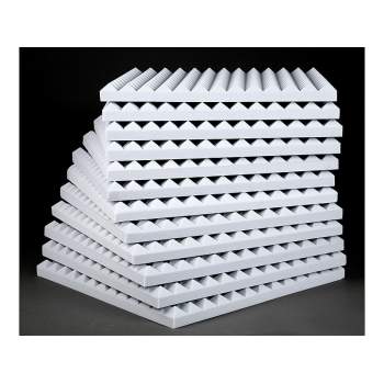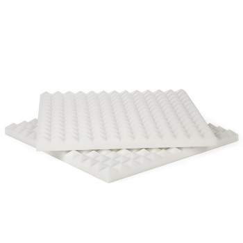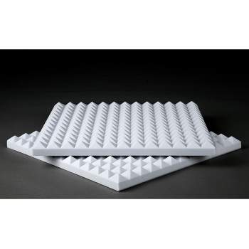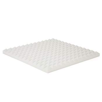 Fireproof acoustic absorbers (pyramid-shaped) presented in 585 x 585mm panels (thickness of 45mm). Self-installable, glued mounting with Skac Adhesive; sold in units! Basotect® acoustic foam, in white or light grey, fire class: M1.