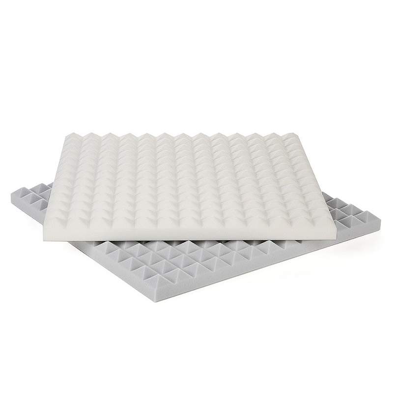 Convoluted acoustic absorbers presented in sheets of 100 x 100cm (thickness of 30mm). Price per pack of 4 units covering up to 4m2. FR28 foam, in grey, self-extinguishing (UNE 53127).