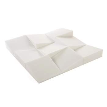 Fireproof sound absorber with a versatile design, 30 x 30cm tiles (thickness of 100mm). Boxes containing 16 - 32 units useful to cover up to 1.4 – 2.9 m2. Basotect® acoustic foam, in white or light grey, fire class: M1.