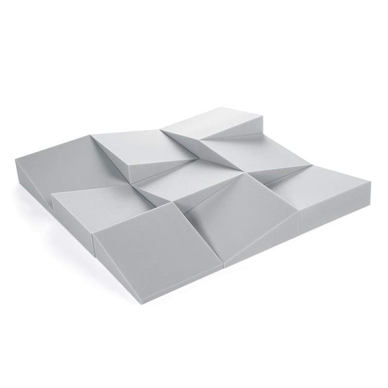 Sound absorber with a unique design, in 60 x 60cm panels (thickness of 64mm). Boxes of 8 - 12 units to cover up to 2.9 - 4.3 m2. ZHFR acoustic foam in charcoal grey or garnet, self-extinguishing, E-d0 (EN 13501-1).