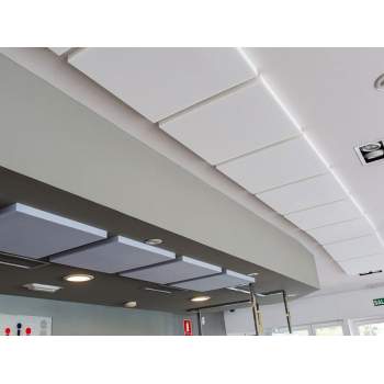 Absorbente acústico Basotect, bafles de 800 x 500mm (50mm espesor). Auto-instalable, montaje: encolado o suspendido; venta en unidades! Espuma acústica Basotect®, color blanco, gris perla o RAL, Clase Bs1d0.
