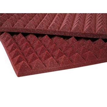 Absorbente acústico piramidal, presentado en planchas de 950 x 950mm (50mm espesor). Precio por pack de 4 unidades para cubrir hasta 3,61m2. Espuma FR28, color gris antracita o granate, auto extinguible (UNE 53127).