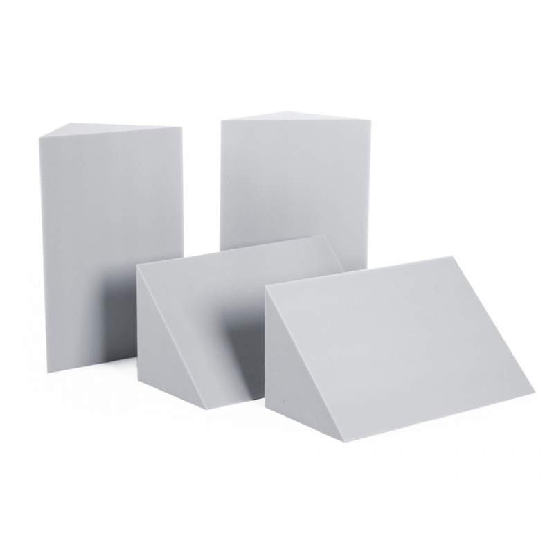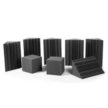 Trampas de graves de corte liso, piezas de 300 x 300 x 600mm. Cajas de 4 o 8 unidades, para cubrir hasta 4 esquinas. Espuma acústica Basotect®, color blanco o gris perla, Clase M1.